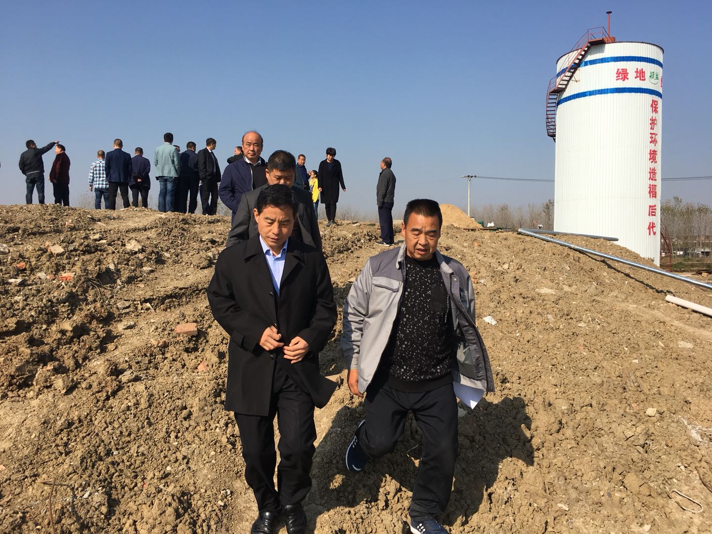 11月4日颍上县县委副书记县长窦灿辉同志和县环保局长王军同志等领导一行人,在耿棚镇委副书记镇长王洪伟同志的陪同下来我公司考察,我公司张秀勇董事长、蒋玉亚监事长全程陪同讲解。